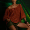 The peasant-style blouse in 100% silk and sun-warmed rust is a timeless piece with a modern ease. Light, elegant, and perfect for mixing and matching from relaxed days to refined evenings.