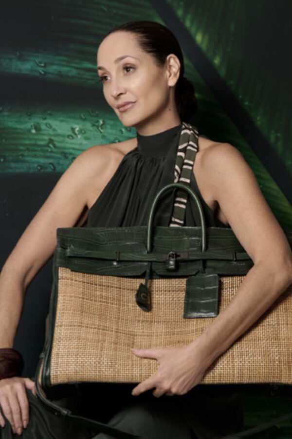 Available in 2 variants: M: Brown Rattan with Green Leather Trim L: Brown Rattan with Brown Leather Trim