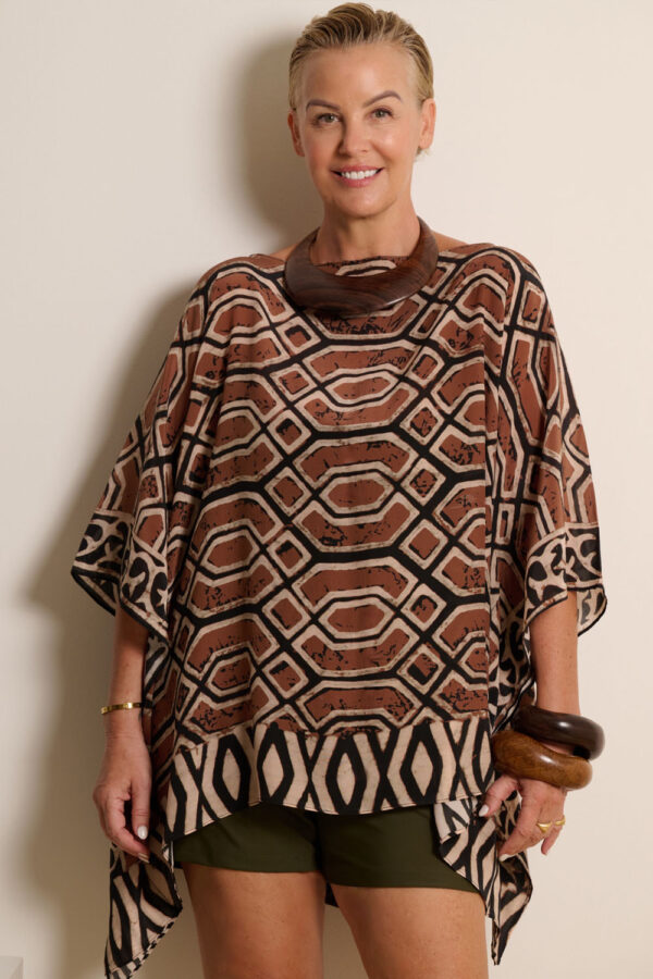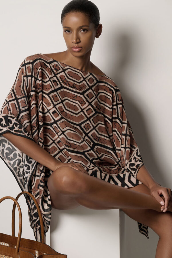 The printed caftan top is a true statement piece, showcasing our signature Bali print. Light, breezy, and beautifully bold, it’s the perfect blend of island spirit and effortless sophistication.