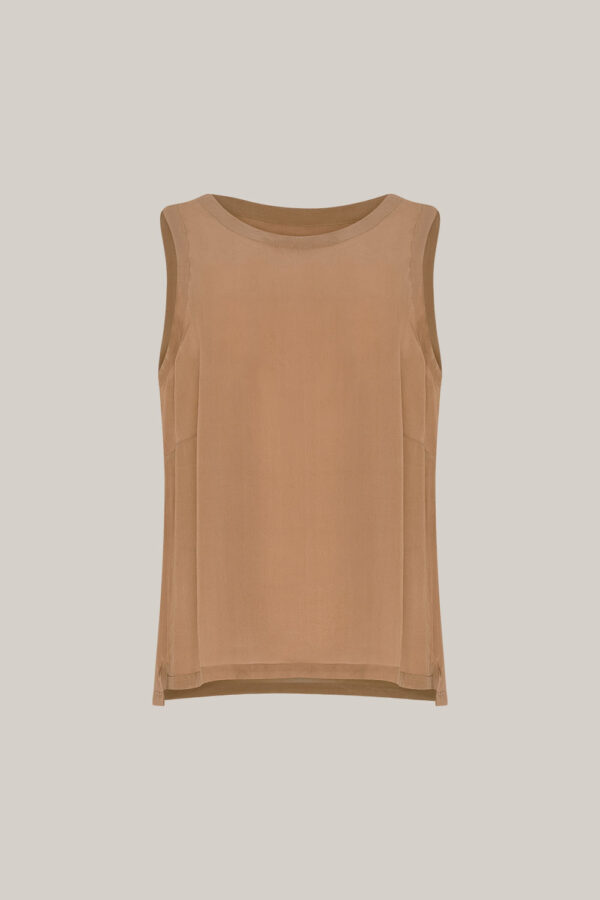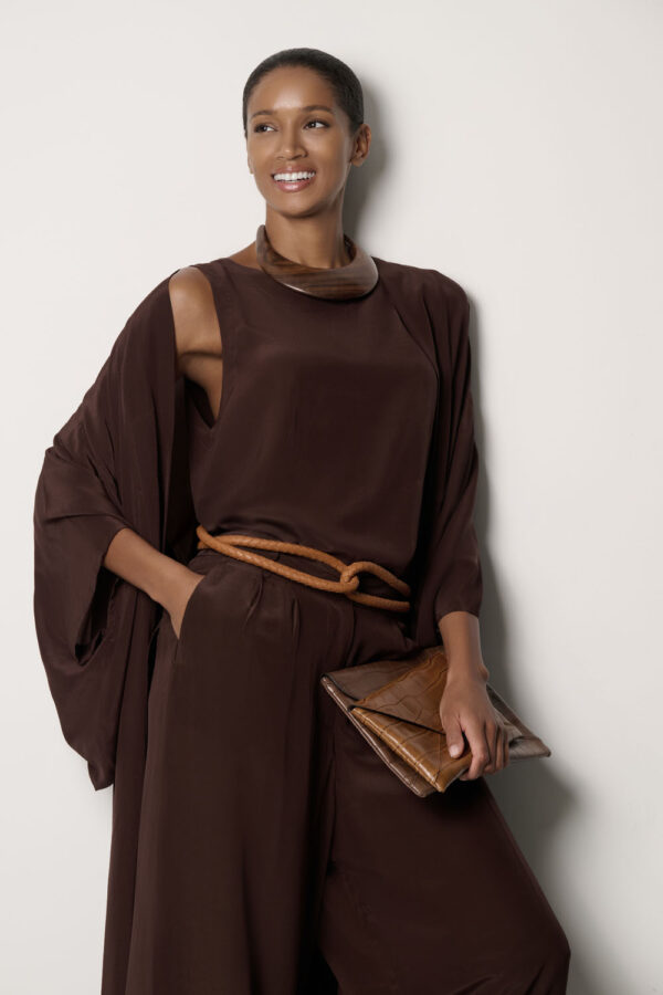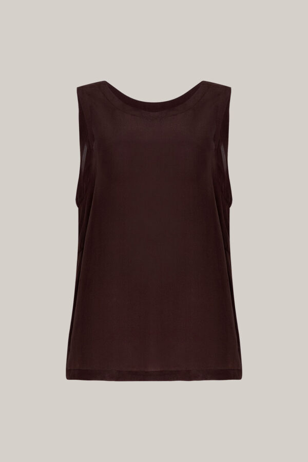 Our tank top in chocolate and beige is a timeless staple for any wardrobe, lightweight, flattering, and endlessly versatile. Pair it with our safari pieces or layer it effortlessly into any outfit.